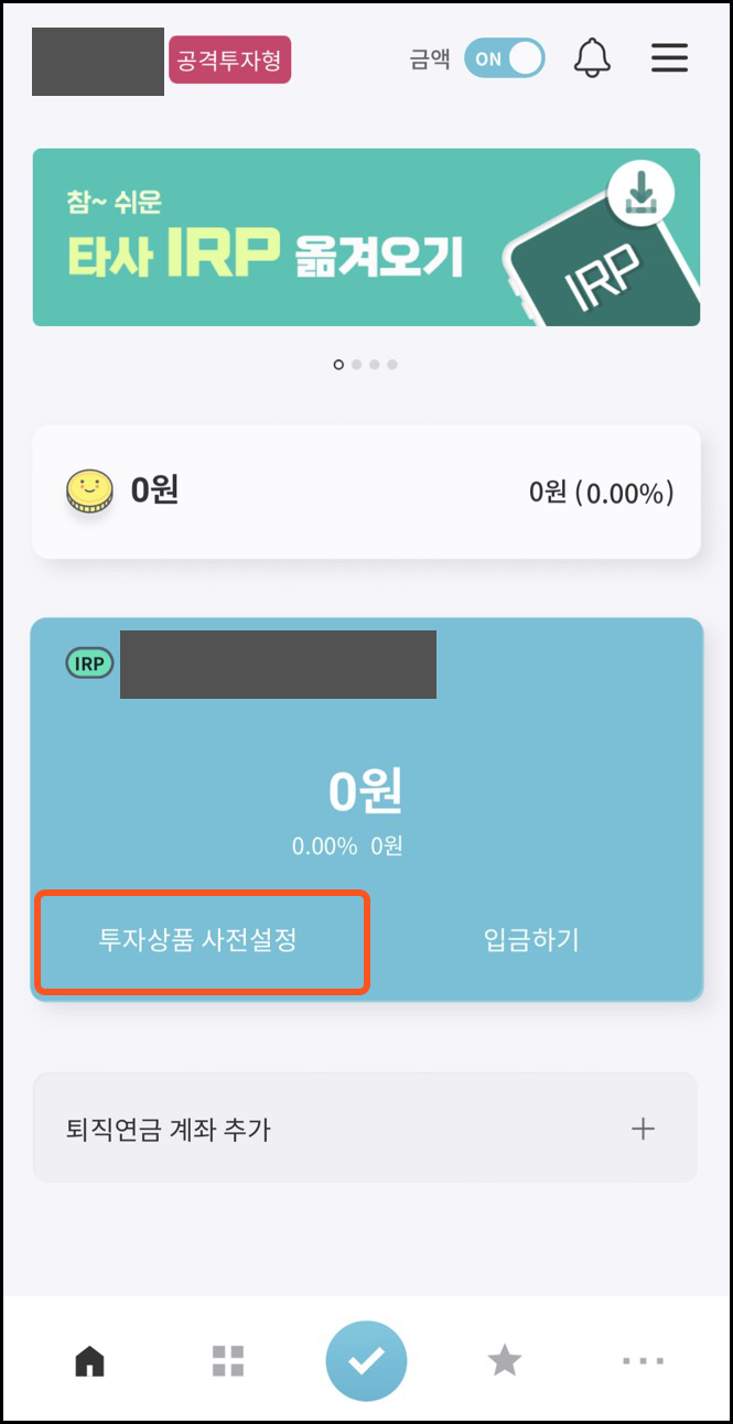 위 화면에서 투자상품 사전설정을 합니다.
