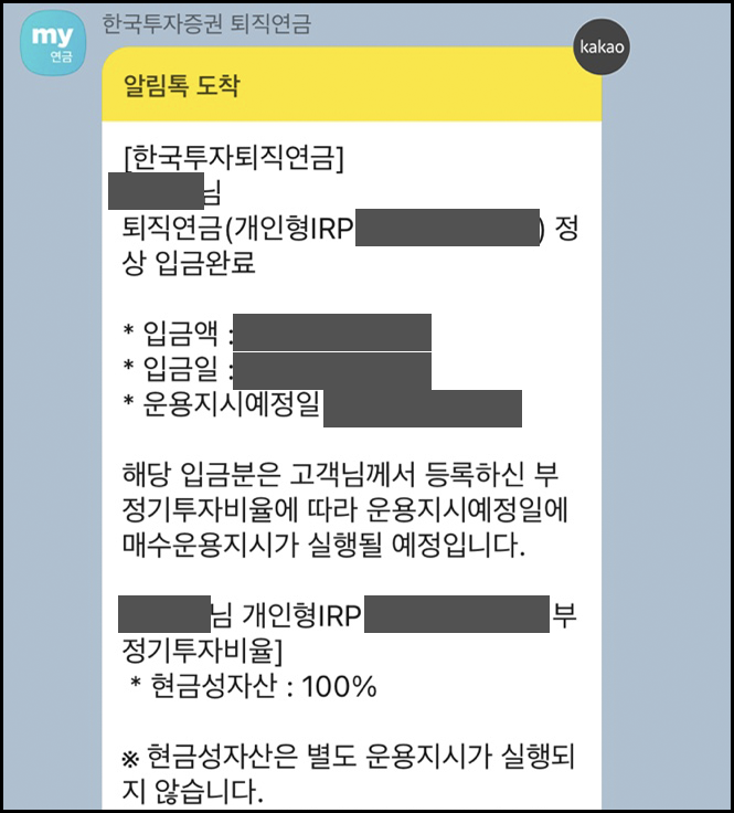 퇴직금을 입금받으면 카카오톡으로 입금완료 메세지를 받을 수 있습니다.