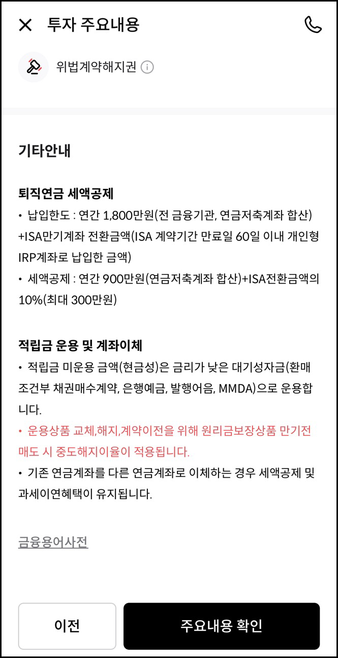 가입 전 투자 주요 내용을 확인합니다.