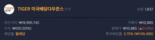 Tiger미국배당다우존스를 2000만원 매수했을때를 계산해보겠습니다.