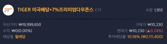 TIGER 미국배당 +7% 프리미엄 다우존스