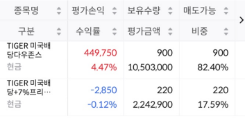 특히 처음에 산 SOL미국배당다우존스는 34주 이외 수량 늘리고 있진않아서