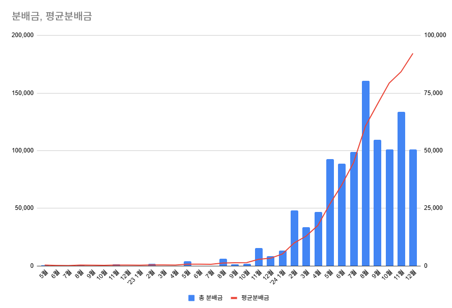 그래프를 보면 24년부터 의미있게 증가하는 분배금입니다.
