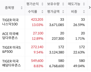 (+연금저축의 SOL처럼 여기에는 작게 ACE미국배당 다우존스가 있다. 귀찮아지면 정리ㄱ)