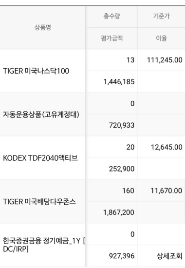 (사담이지만 IRP계좌는 계좌를 보는것 차제가 굉장히 어렵게 되있는데, 개인연금처럼 정리된 화면이 있으면 좋겠네요.)