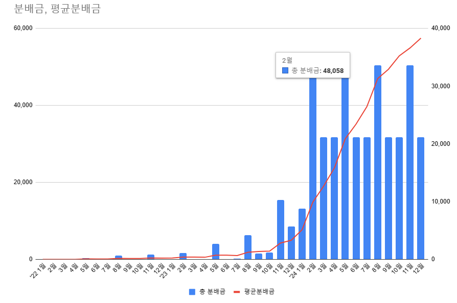 24년 2월 받은 총 분배금은 48,058원입니다.