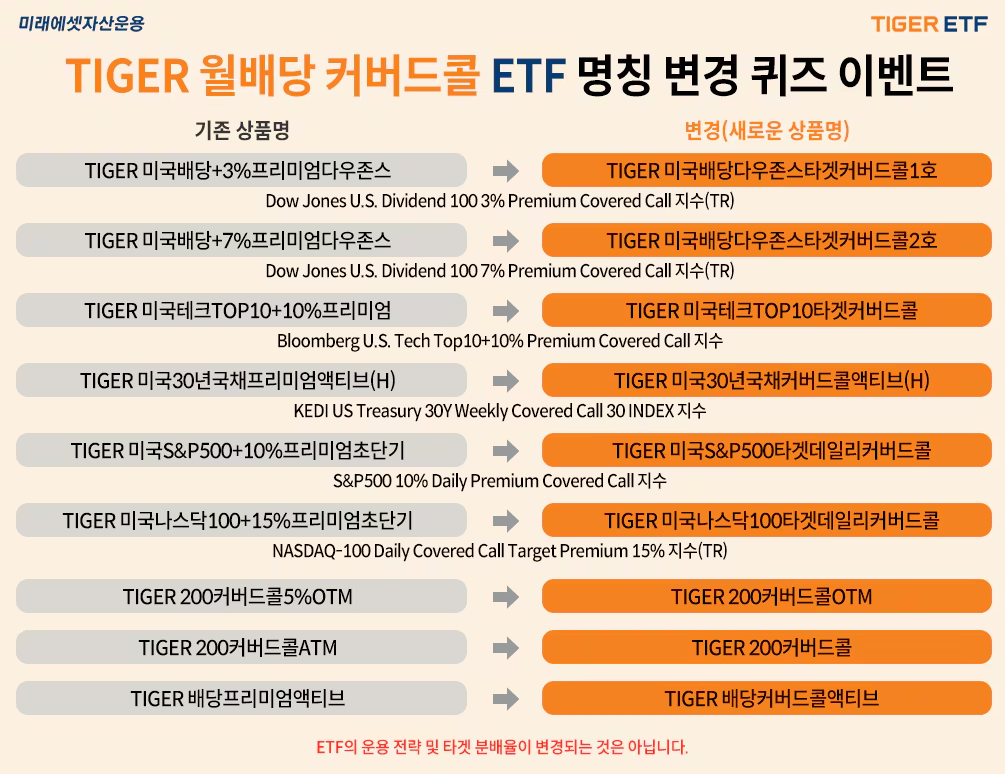때문에 TIGER 미국배당+7%프리미엄다우존스였던 etf의 이름은