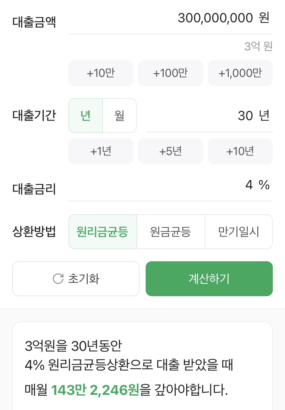 3억 대출시 143만 2,246원